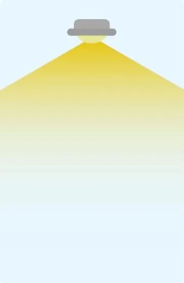 Una lampadina con angolo del fascio luminoso molto ampio è la scelta ideale per l'illuminazione generale di una stanza, anche di grandi dimensioni. Assicurati, però, che i coni di luce delle lampade coprano ogni area, altrimenti è consigliabile installare nella stanza altri punti luce.