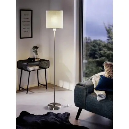Eglo Lampada da terra Pasteri Acciaio Nichel Satinato Taupe | IP20 - Adatto per 1x E27