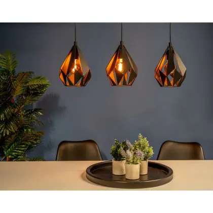 Eglo Luce Pendente Carlton 5 Acciaio Nero | IP20 - Adatto per 3x E27