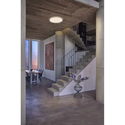 Per scegliere un apparecchio di illuminazione bisogna anche considerare dove verrà installato. Per esempio la luce di 2700 Kelvin (bianco molto caldo) e 3000 Kelvin (bianco caldo) creano un’atmosfera rilassante e piacevole. Questa tonalità è quindi molto adatta ad ambienti accoglienti o a zone generiche come corridoi, ascensori, disimpegni o pianerottoli. Una luce di 4000 Kelvin (bianco freddo), invece,è più luminosa e fresca ed è quindi adatta come illuminazione funzionale in uffici, aziende, scuole e biblioteche. La temperatura di colore di questa plafoniera LED è .