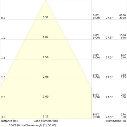 Angolo del Fascio luminoso (gradi) | 55 |