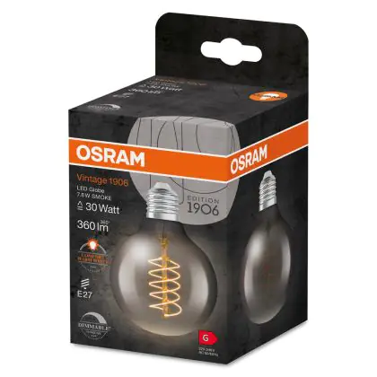 La Ledvance Vintage 1906 LED E27 Globe Smoke 7.8W 360lm - 818 Bianco Molto Caldo | Dimmerabile - Sostitua 30W è la perfetta sostituzione per la tua lampada convenzionale 30W con attacco E27 grazie alla sua tecnologia LED. Passare a LED ti offrirà tanti vantaggi!