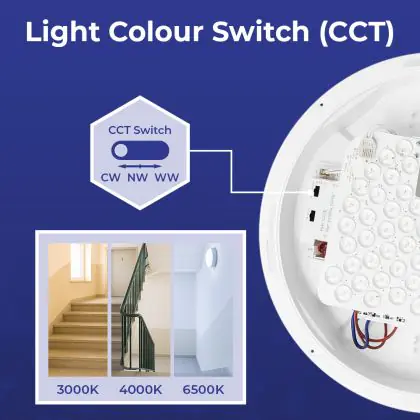 Per scegliere un apparecchio di illuminazione bisogna anche considerare dove verrà installato. Per esempio la luce di 2700 Kelvin (bianco molto caldo) e 3000 Kelvin (bianco caldo) creano un’atmosfera rilassante e piacevole. Questa tonalità è quindi molto adatta ad ambienti accoglienti o a zone generiche come corridoi, ascensori, disimpegni o pianerottoli. Una luce di 4000 Kelvin (bianco freddo), invece,è più luminosa e fresca ed è quindi adatta come illuminazione funzionale in uffici, aziende, scuole e biblioteche. La temperatura di colore di questa plafoniera LED è .
