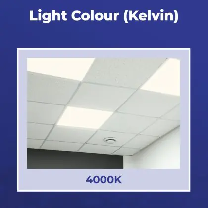 Per quanto riguarda il colore della luce, ci sono diverse opzioni fra cui scegliere, ognuna con una diversa applicazione. Una luce di 3000K (bianco caldo) è particolarmente adatta alle aree generali, mentre la luce di 4000K (bianco freddo) favorisce la concentrazione e l'attenzione e quella di 6500K (bianco luce del giorno) è l'opzione migliore per i luoghi in cui serve avere una buona visibilità dei dettagli. Questo particolare apparecchio ha temperatura di colore di 4000K - Bianco Freddo.