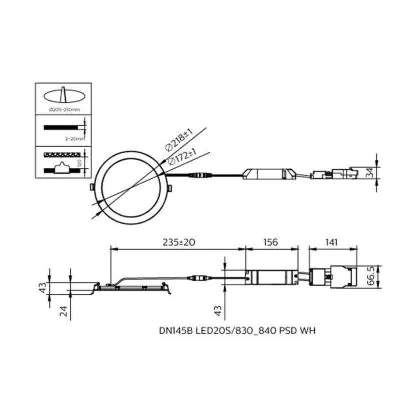 Descrizione Philips Downlight LED CoreLine Aluminium Bianca 18W 2100lm 180D - 830-840 CCT | 218mm - Ritaglio 210mm - IP44 - Dali Dimmerabile